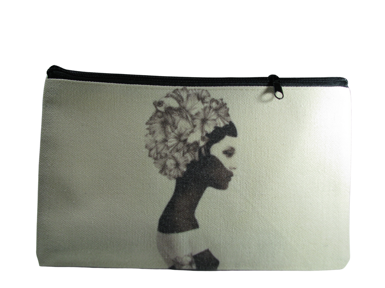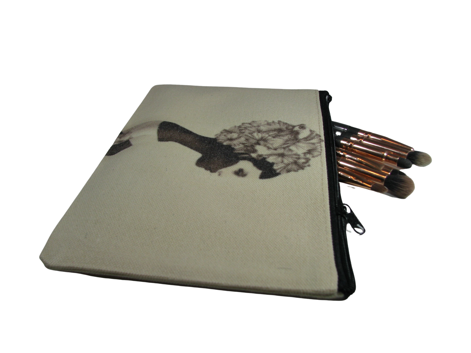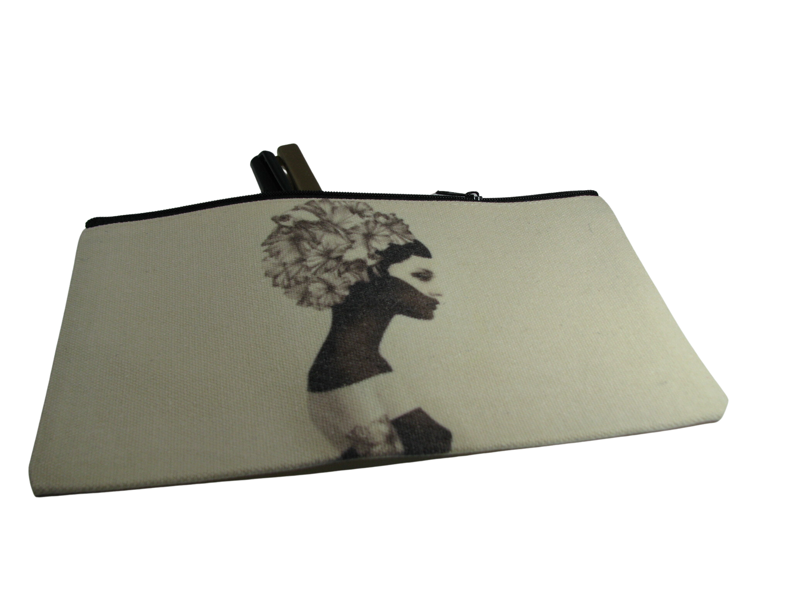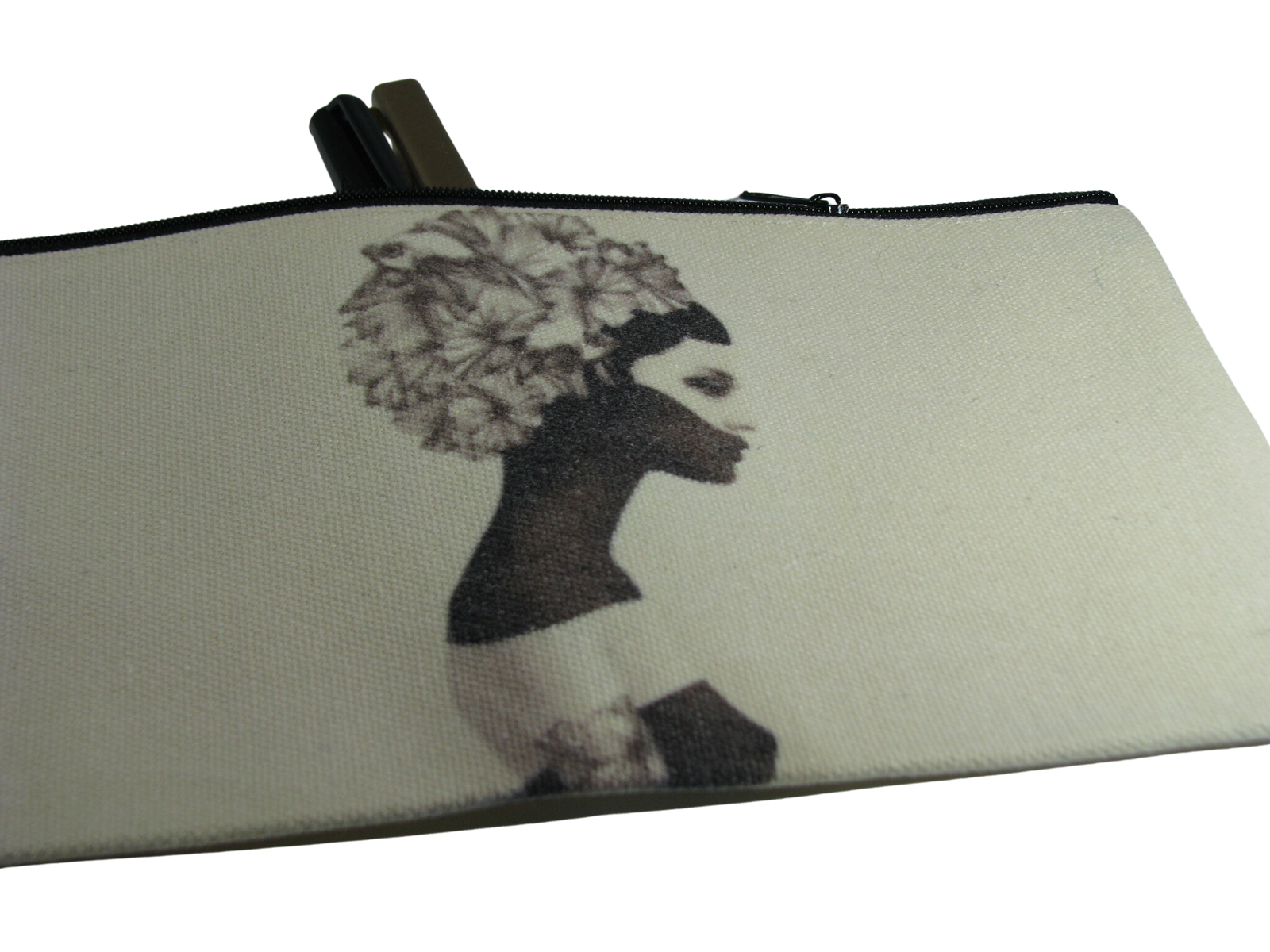 This pouch is made from canvas with the image printed on the front, it can be used for makeup, art supplies, stationary or just a every day little bag. Makes a perfect gift for anyone who enjoys graphic designs, flowers, bold designs, women empowerment or just black and white colors.